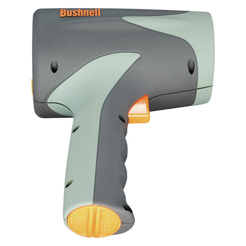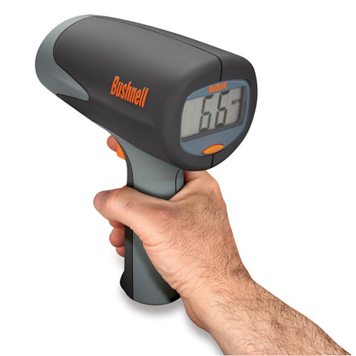 The Velocity is also a breeze to use, with a point-and-shoot pistol grip that displays the fastest speed timed once the trigger is released. The Bushnell Velocity radar gun offers easy point-and-shoot operation that can be used for tracking everything from race cars to pitching speeds. A large LCD display makes it easy to read the speed. Aim the Velocity at the target and depress the trigger. As a quick reference to accuracy, remember to keep your target’s direction of travel in a direct line with you and not perpendicular to you