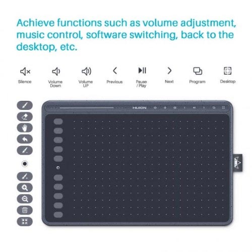 To boost your workflow, the HS611 includes 10 programmable express keys, 8 multimedia keys, and a touch strip, so you can do everything from zooming to volume control without leaving your creative application. The tablet connects via reversible USB-C, making it convenient to plug in any time—even in low-light environments.