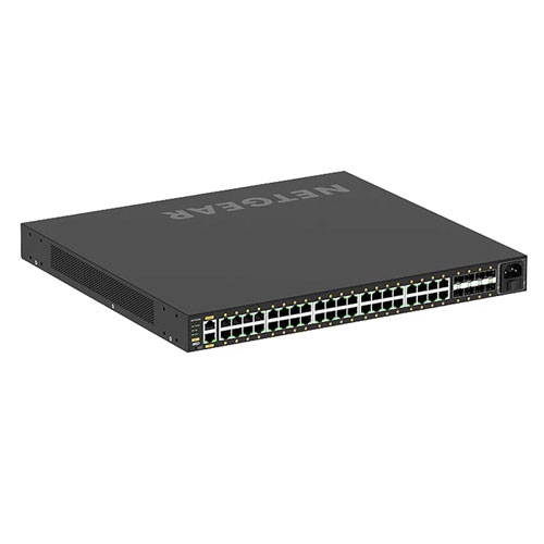 The Netgear M4250-40G8XF-PoE+ (GSM4248PX) 48-Port Managed Switch is a high-capacity, enterprise-grade networking solution designed to meet the growing connectivity, power, and performance needs of modern businesses, AV-over-IP installations, and large-scale enterprise networks. As part of NETGEAR’s advanced M4250 series, this switch delivers professional-level performance with extensive Power over Ethernet Plus (PoE+) support, flexible uplink options, and robust managed features — all housed in a rack-ready platform ideal for structured network deployments.