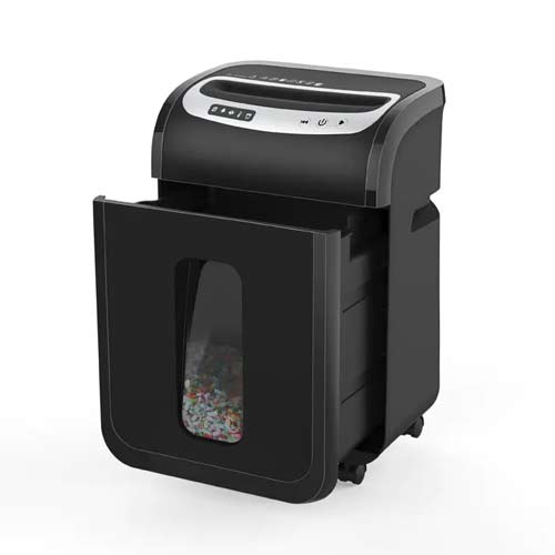Equipped with four smooth castor wheels, you can easily move the shredder from room to room. Its vertical, compact design ensures it fits in tight office spaces without clutter.