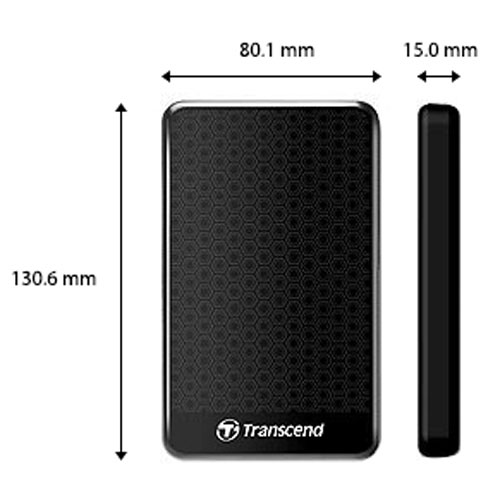 Transcend StoreJet 25H3 Portable 1TB Hard Disk Drive (HDD) Rugged durability doesn't always come at the expense of style. The StoreJet 25A3 external hard drive offers an impressive level of anti-shock protection without sacrificing its slender good looks. This feature-packed hard drive is equipped with a USB 3.1 Gen 1 interface, a multifunction button, and up to 1TB of storage capacity.