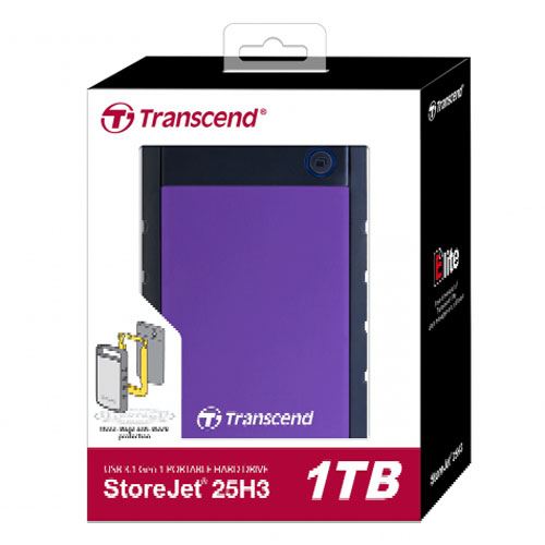 Transcend's StoreJet 25H3 ruggedized portable hard drive combines supreme shock-resistant qualities with the USB 3.1 Gen 1 interface, allowing for ultra-fast file transfers and the highest level of anti-shock protection. With up to 4TB storage capacity, the StoreJet 25H3 eliminates all fears of running out of storage.