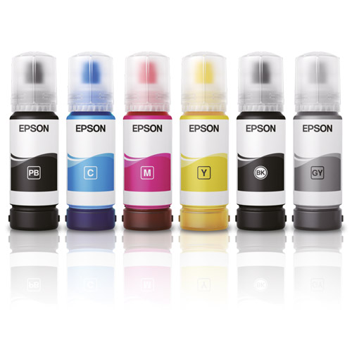 A Full Set of Epson 115 EcoTank ink Bottles Includes Six Bottles of Ink: Pigment Black (PG) C13T07C14A , Cyan (C) C13T07D24A, Black (B) C13T07D14A, Magenta (M) C13T07D34A, Yellow (Y) C13T07D44A, Grey(GY) C13T07D54A. The ink bottles are easy to refill, and the printer will automatically detect when the ink is low and prompt you to refill the appropriate tank full set contains of ink, and the set is good for printing up to 6,200 pages or 2,300 photos Print. The Epson 115 EcoTank Full Set ink bottle set is a great value for the money. It's the perfect way to keep your Epson 115 EcoTank printer running smoothly and efficiently. The ink Bottles Come with a Manufacturer Warranty.
