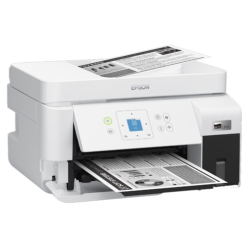 The Epson EcoTank M2050 boasts a sleek and compact design, optimized for space-saving and user convenience. Its matte black finish and modern contours give it a professional appearance that blends seamlessly into any office environment. Despite its compact size, the M2050 is built to handle demanding tasks, featuring a sturdy construction that ensures durability and longevity, even with heavy daily use.