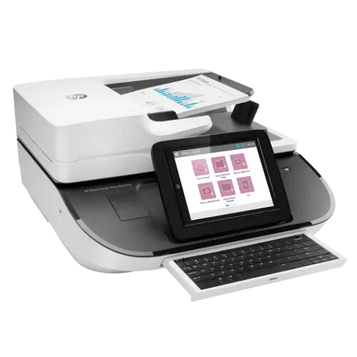 Equipped with a 150-sheet automatic document feeder (ADF), OCR capabilities, and advanced security features, the HP 8500 fn2 allows seamless document digitization, email sending, and network storage integration. Its 8-inch color touchscreen and keyboard offer a user-friendly experience, making it perfect for workflow automation, secure document management, and enterprise-level scanning.