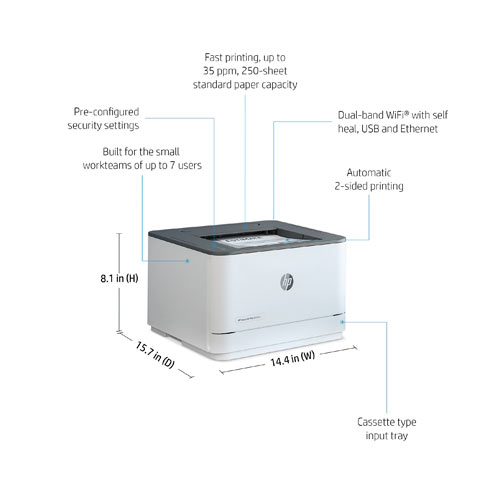 Built for speed and reliability, the HP 3001dw is ideal for users who need sharp black-and-white document printing, automatic duplex (double-sided) printing, and advanced wireless connectivity. Plus, with HP Wolf Pro Security, your documents and data stay protected across your entire print network.