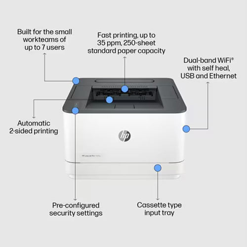 The HP LaserJet Pro 3001dw is a powerful and compact monochrome laser printer designed to deliver ultra-fast, secure, and wireless printing. Whether you're managing a small office, startup, or professional workspace in Bangladesh, this printer ensures high-volume efficiency without compromising quality.