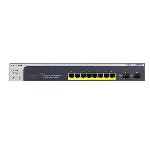 The Netgear GS510TPP 8-Port Gigabit PoE+ Smart Managed Switch is ideal for businesses that need a combination of performance, flexibility, and control in one compact package. Its PoE+ support simplifies deployment of network devices like access points and IP cameras without requiring separate power adapters, reducing installation costs and complexity. Smart features such as VLANs and QoS allow you to tailor your network to support voice, video, and data traffic efficiently. With Gigabit speeds on every port and advanced management capabilities, this switch helps organizations maintain reliable connectivity, improve network performance, and scale operations easily as demands grow.