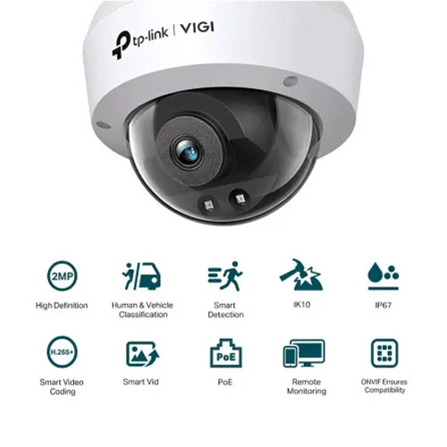 The TP-Link VIGI C220I 2MP IR Dome IP Camera is a robust surveillance solution designed for both indoor and outdoor environments, merging high clarity, intelligent detection, and durable build into one device. With a 2-megapixel, full-HD 1080p resolution, this dome camera now gives sharper detail than entry-level models, making it easier to see faces, license plates, or other important details. The IR (infrared) illumination delivers up to 30 meters of visibility in darkness, enabling 24/7 monitoring.